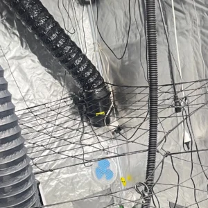 Fresh air entered through two Mars Hydro iFresh 6″ intake fans fitted with automotive filters, while a single Vivosun S6 handled extraction. The tent’s climate stability relied on a 2.6 kW Arlec portable air conditioner with WiFi control, supported by a Spider Farmer 6 L humidifier and a Spider Farmer 32-pint dehumidifier—both using external sensors for accurate environmental response. An Arlec 1700 W ceramic heater on an Inkbird WiFi controller maintained temperature during colder periods. A Mars Hydro 6″ duct was also connected to the AC vent and routed to the tent roof to improve airflow distribution.