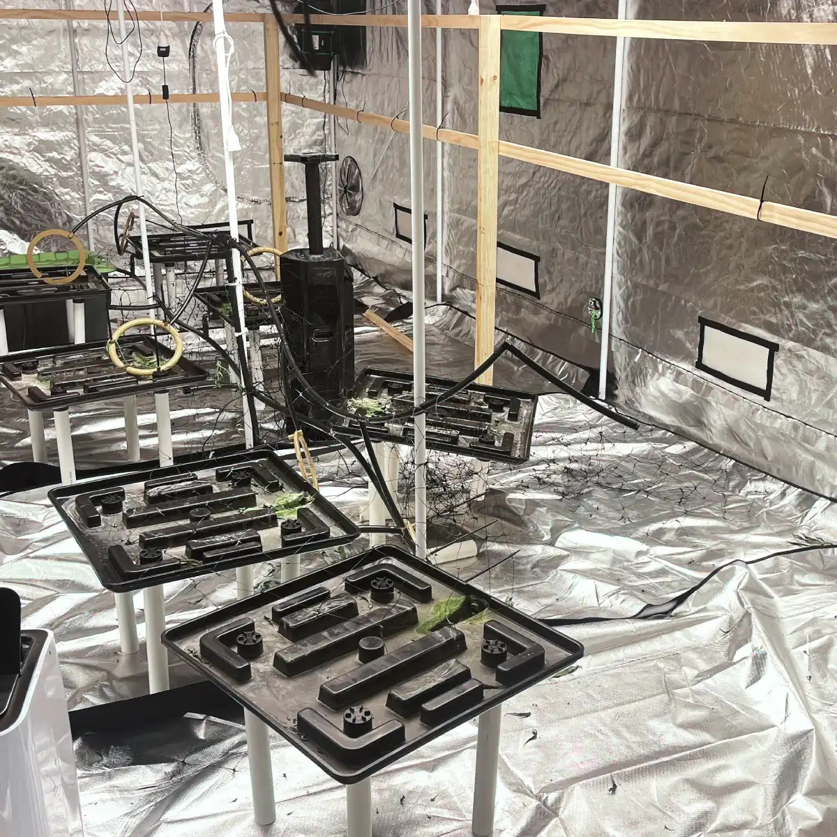 - ScrOG net: 2 × 5 × 2 m plastic nets on a wooden frame with 40 cm spacing
